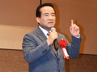 続いて、あいさつに立った叶正喜会長は、来賓や参加会員に謝意を表した上で「脇田真由美さんが奄美民謡大会壮年の部で最優秀賞を受賞したことや、本同窓会踊り連が5月の渋谷・鹿児島おはら祭で「ラブハチ賞に輝いたこと。また、銀座もとじの泉二弘明会長が先の東京奄美会文化講演会で講師を務め大好評だったこと」などを紹介した。