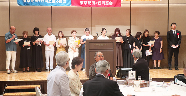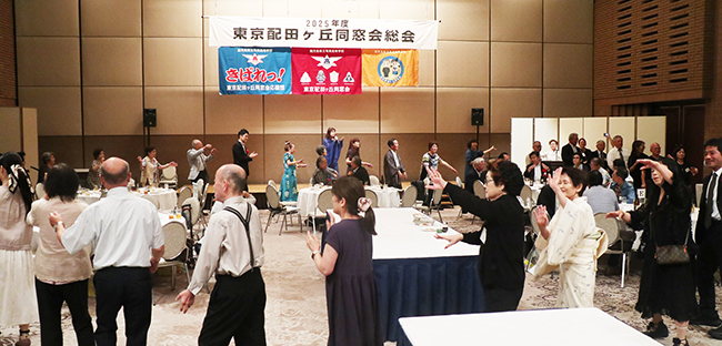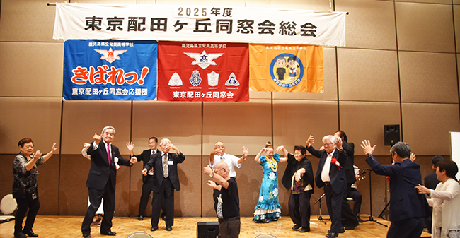 懇親会には同窓会本部の和田孝之会長と関西配田ヶ丘会の村田勝代監査役、母校の脇浩一校長、関東地区の他高校同窓会などからの来賓も含め約80人が出席。今年も「絆を大切に、親睦の和を広げよう!!」をテーマに、旧交を温めながら親睦を深めた。