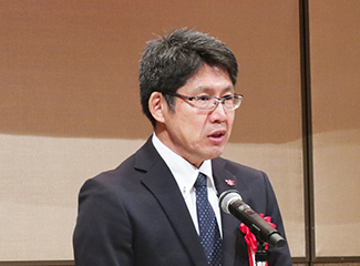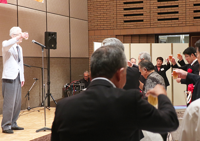 祝辞を述べる同窓会本部の和田会長