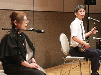 シマ唄を歌う脇田さん(左)と折原さん |