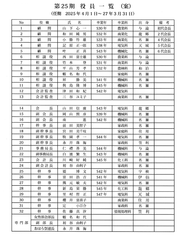 ◎第25回総会で承認された新役員は下記の通り