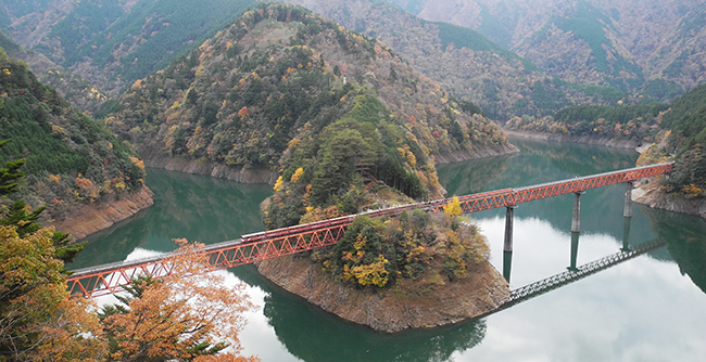 接岨湖(せっそこ)にある大井川鐵道の奥大井湖上駅(国内秘境駅の一つ)