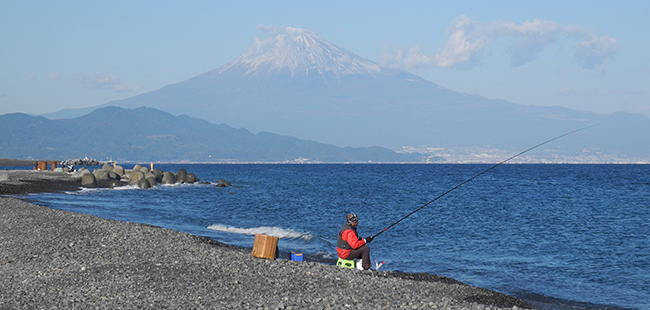 | 三保の松原海岸で釣りを楽しむ人 |