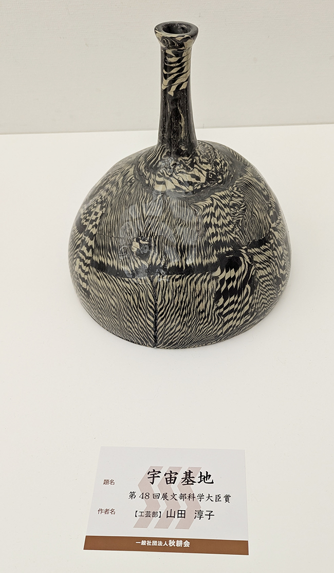 同じ練り上げ技法で作り、第48回秋耕展で文部科学大臣賞を受賞した「宇宙基地」も、功労者作品として展示されていました(写真上右)。