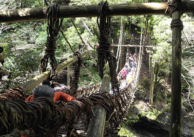 平家の落人伝説が残るかずら橋を見て渡るのは初だった。お遍路道中では西洋人を見かけたが、かずら橋ではアジア系の団体観光客が多かった。