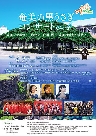 奄美の黒うさぎコンサート実行委員会は、毎年好評を博している「奄美の黒うさぎコンサ−ト」の第4回を4月27日(日)、川崎市の麻生市民館大ホールで開催いたします。